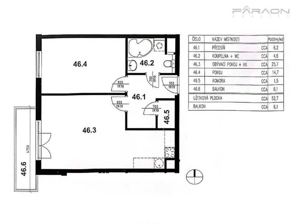 Dispozici bytu tvoří předsíň, obývací pokoj s kuchyňským koutem, ložnice, koupelna s WC a komora.