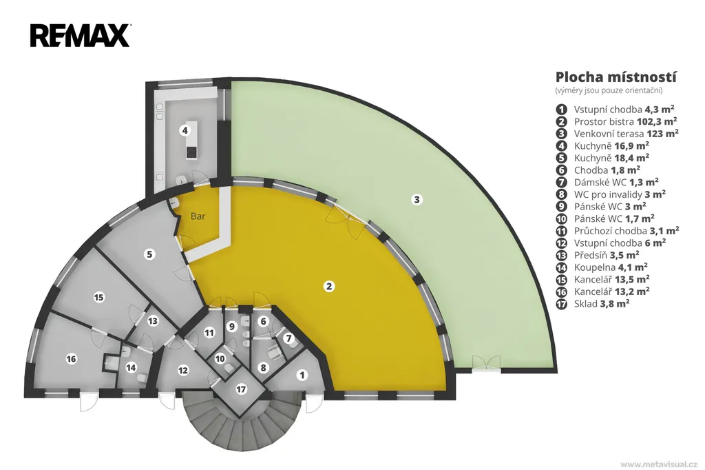 - bistro (200 m2) s přímým vstupem na venkovní terasu (124 m2)