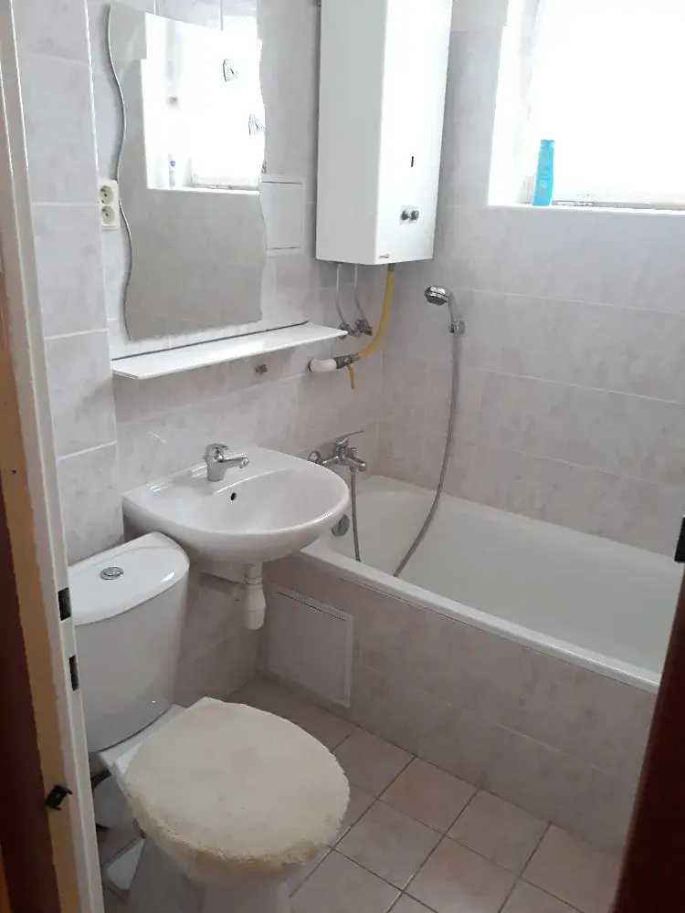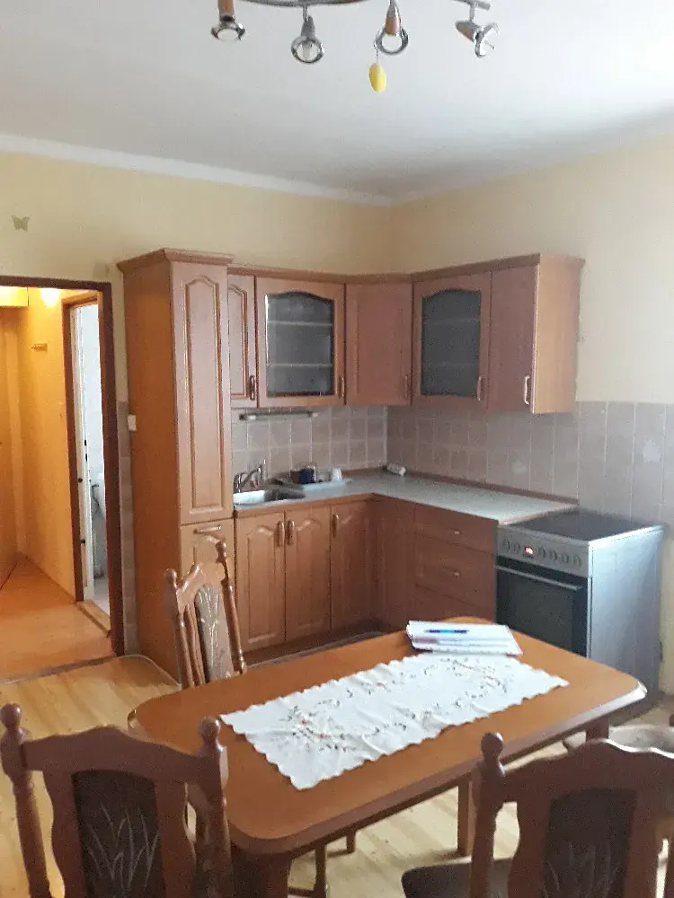 Byt je částečně zařízen: gauč, obývací stěna, jídelní stůl se židlemi, šatní skříň, botník.