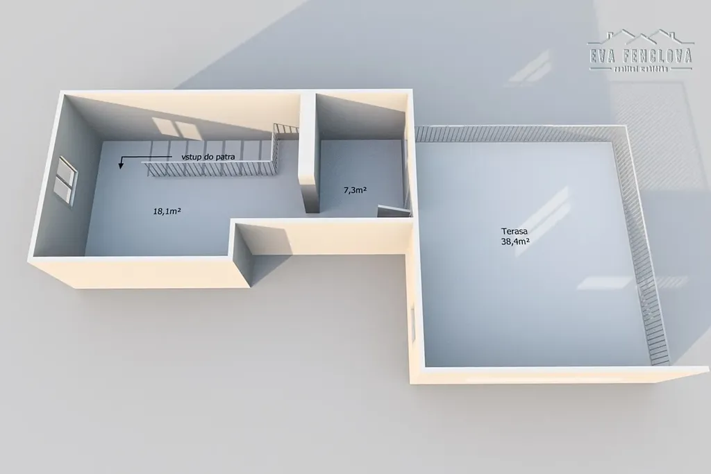 Z obývacího pokoje pak po dřevěných schodech vystoupáte do druhého podlaží, kde naleznete velkou ložnici s možností rozdělení na 2 pokoje.