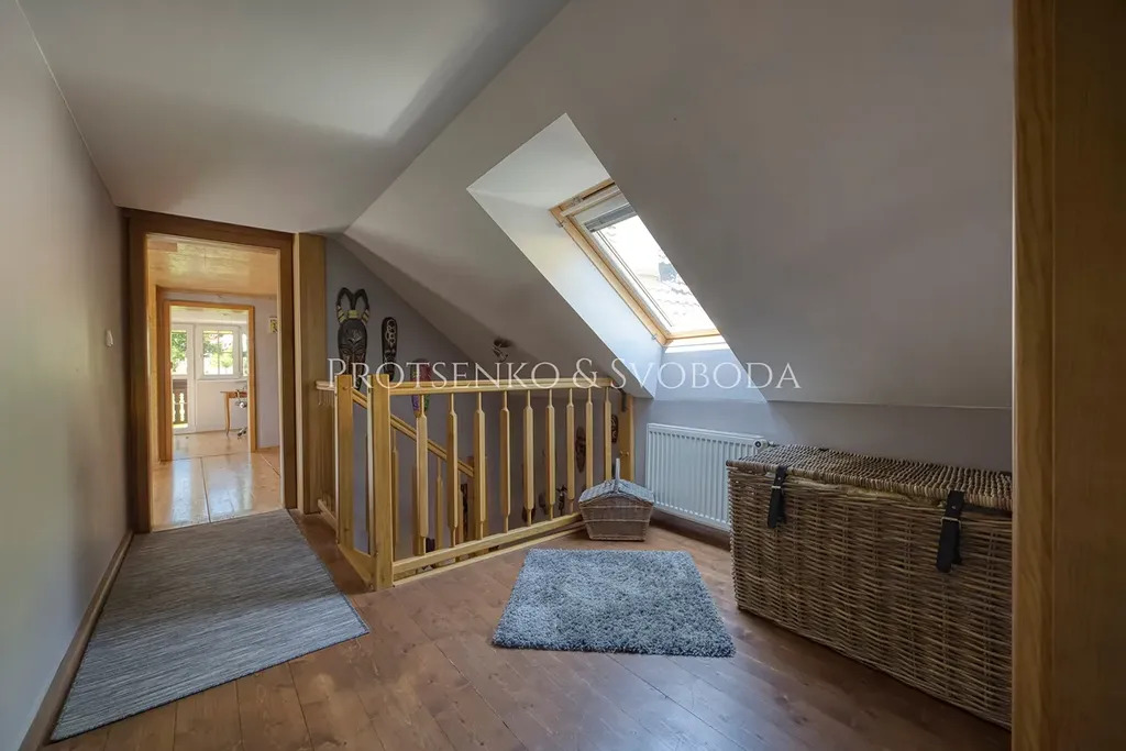 Chalupa prošla důkladnou a citlivou rekonstrukcí, která zachovala její charakter a zároveň přinesla pohodlí pro dnešní potřeby. Zateplená fasáda i střecha chrání dům před rozmary počasí, zatímco dubové podlahy nejvyšší kvality vnášejí do interiéru přírodní teplo a eleganci. Truhlářem na míru zhotovené dveře a rustikální kuchyně podtrhují vztah k tradici a ručnímu řemeslu.