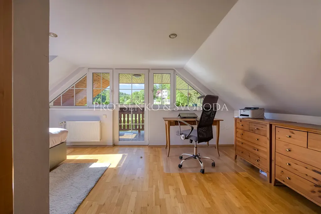 Uvnitř domu vás přivítá obývací pokoj s krbovými kamny, které vnášejí hřejivou atmosféru a pocit skutečného domova. Dvě prostorné garáže nabízejí možnost rozšíření obytné části o další pokoje či ateliér, podle vašich představ. Na pečlivě upraveném pozemku potěší plně funkční udírna pro milovníky poctivé gastronomie, venkovní bazén pro letní osvěžení a samostatný zahradní domek proměněný v privátní wellness zónu s útulnou saunou – ideální místo k odpočinku a regeneraci.