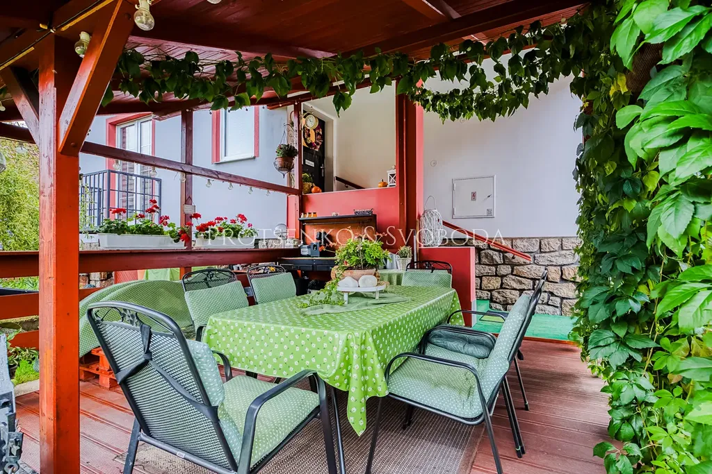 K domu patří garáž a parkování až pro pět vozidel, což ocení nejen rodiny, ale i ti, kteří potřebují více prostoru pro podnikání či koníčky.