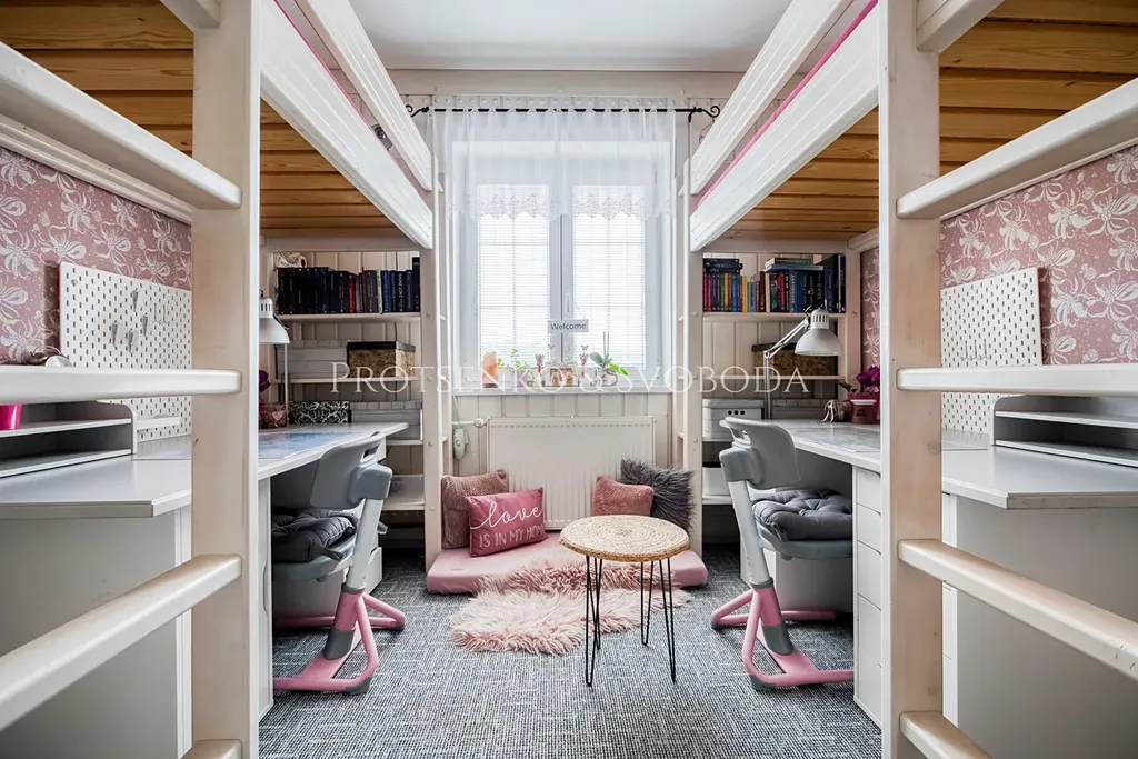 Dispozice domu nabízí více než pět prostorných pokojů, které poskytují dostatek místa pro větší rodinu, kombinaci bydlení s podnikáním nebo komfortní život s hosty.
