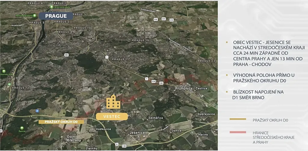 V exkluzivním zastoupení nabízíme k prodeji komerční pozemek s platným ÚR pro logistiku a skladování, výrobu, obchodní prostory popř.vědu a výzkum a obč.vybavenost v rozvíjející se lokalitě Praha-Vestec, v ulici Průmyslová/Hodkovická. Komerční pozemky jsou plně zasíťovány (voda, elektřina, plyn, kanalizace, veřejné osvětlení), je zde vybudována páteřní komunikace a jsou určeny pro výstavbu dle těchto podmínek: