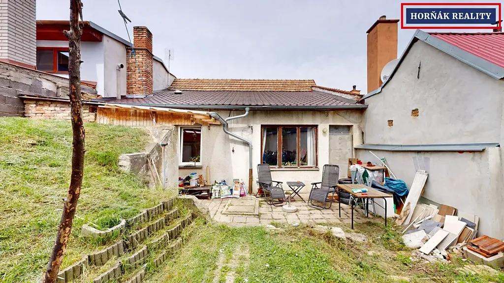 Nabízený řadový rodinný dům k prodeji o dispozici 3+1 a půdorysu 86 m2 najdete v klidné obytné zástavbě okrajové jižní části města Bučovice, 30 km od centra Brna. Je v započaté rekonstrukci s možností rozšíření o půdní vestavbu. V současnosti disponuje třemi obytnými místnostmi, kuchyní a koupelnou s vanou, sprchou a WC o rozlohách: