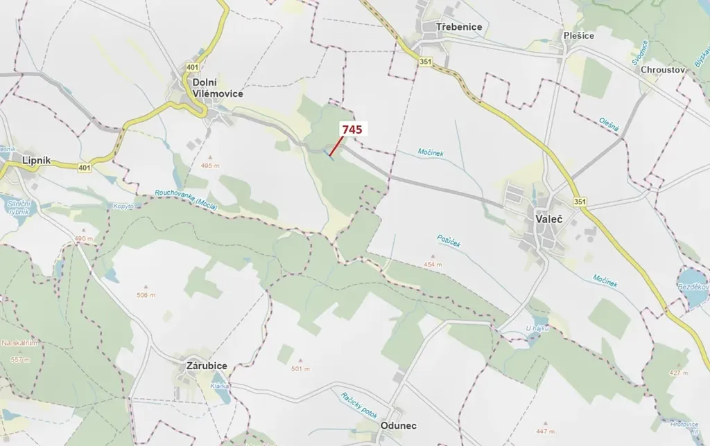 Lesní pozemek o výměře 1957 m2, parcelní číslo 745, podíl 1/1, katastrální území Dolní Vilémovice, obec Dolní Vilémovice, obec s rozšířenou působností Třebíč, okres Třebíč, Kraj Vysočina. Po těžbě.