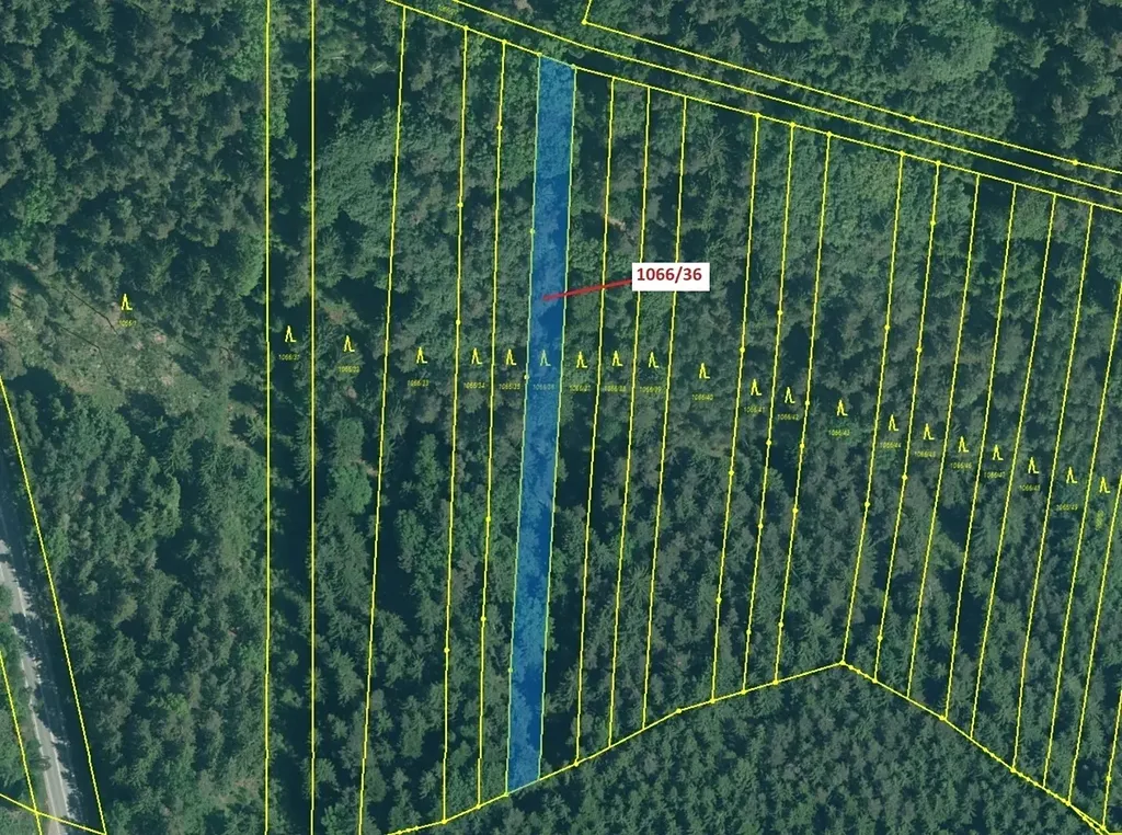 Lesní pozemek o výměře 1983 m2, parcelní číslo 1066/36, podíl 1/1, katastrální území Strážkovice, obec Strážkovice, obec s rozšířenou působností České Budějovice, okres České Budějovice, Jihočeský kraj. Po těžbě.