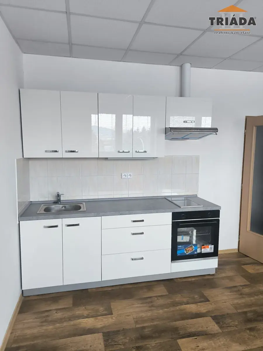 Nabízíme podnájem bytu o velikosti 1+kk ve 3.NP bývalého průmyslového objektu. V bytě je předsíň a pokoj s kuchyňským koutem vybaveným kuchyňskou linkou a sporákem. V koupelně je umyvadlo, sprchový kout, WC a místo pro připojení pračky. Teplo a teplá voda - centrální ohřev, kotelna v domě, el. 230V, veřejná kanalizace, TV anténa. Měření energií a služeb pro každý byt. Při podpisu nájemní smlouvy je vybírána jistota ve výši 35.400 Kč.