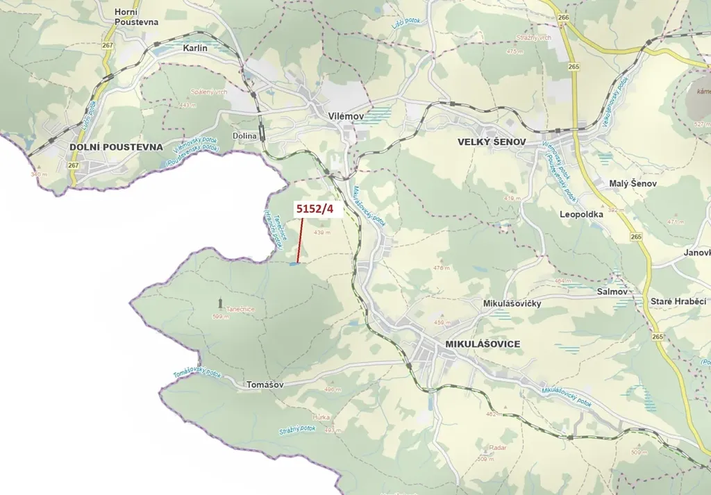 Lesní pozemek o výměře 3 638 m2, parcelní číslo 5152/4, podíl 1/1, katastrální území Mikulášovice, obec Mikulášovice, obec s rozšířenou působností Rumburk, okres Děčín, Ústecký kraj. Po těžbě.