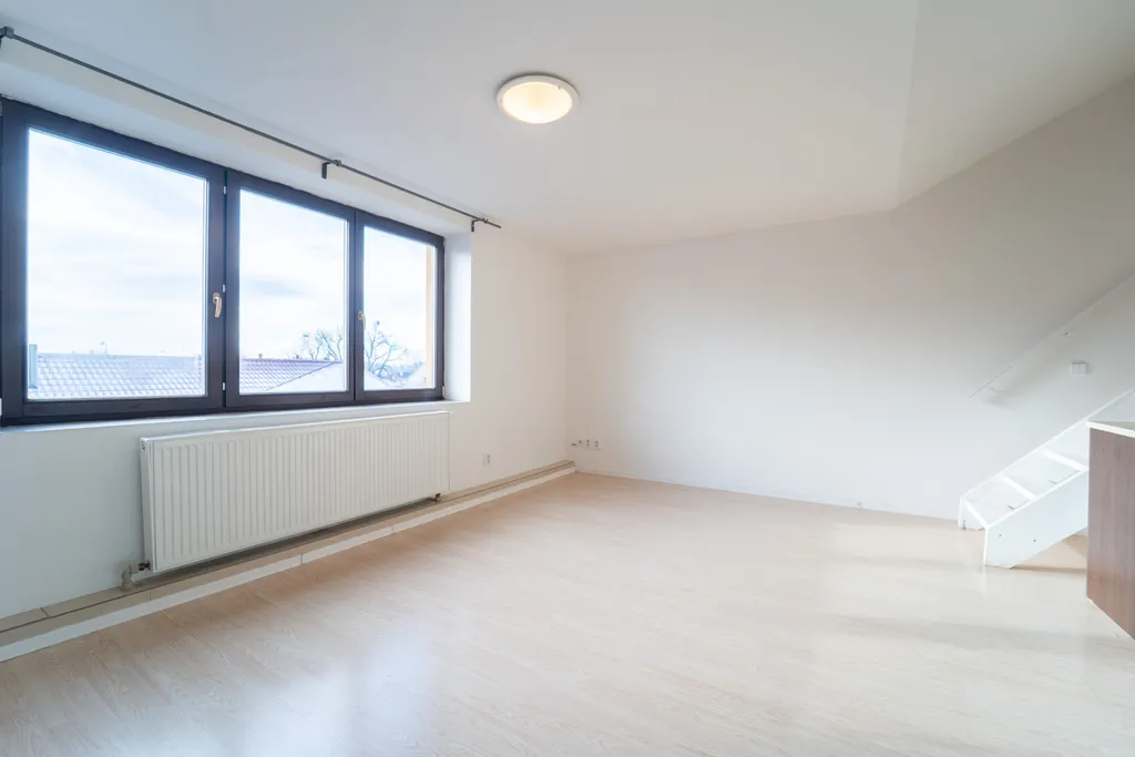 Dovolujeme si Vám nabídnout pronájem zajímavého slunného mezonetového bytu 2+kk. Byt se nachází v 3.NP cihlové novostavby bez výtahu. Samotný byt je v dobrém udržovaném stavu, zděné jádro, koupelna se sprchovým koutem, společně s WC, teplá voda řešena bojlerem, topení řešeno lokální kotelnou v domě, podlahové krytiny tvoří plovoucí podlahy a dlažba.