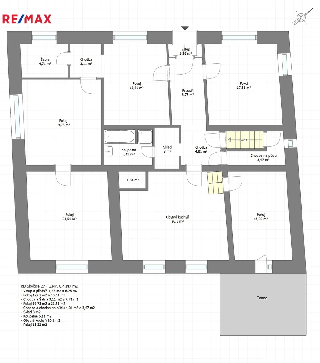 V zastoupení majitele Vám nabízíme prodej velkého rodinného domu o dispozici 5+1 v obci Skočice v okr Strakonice. Dům je dvoupatrový, horní obytné patro je přístupné přímo z ulice a tvoří ho vstupní chodba z níž je vstup do jednotlivých pokojů z nichž jsou některé pruchozí za sebou, dále je vstup do koupelny a obytné kuchyně. Z chodby je také vstup nahoru do veliké prostorné půdy a sestup do spodního patra kde je technické zázemí domu, včetně dílen, sklepu a kotelny. Na dvoře se nachází několik zastřešených prostor, které jsou v dobrém stavu a byli dříve využívány pro chov domácích zvířat i předpěstovávání a pěstování rostlin. Ze dvora do něhož je vjezd z boční ulice je i garáž a vstup na zahradu v níž je umístěna plechová garáž. Z této garáže je přímý výjezd na hlavní silnici. Celý dům je zachovalý, ale odpovídá svým vybavením cca 80tým letům. Usedlost byla postavena v roce 1868, ze smíšených materiálů s výškou stropů cca 3 metry, okna dřevěná udržovaná, zdi jsou suché, krov naprosto v pořádku a střešní krytina je sice starší, ale v dobrém stavu. Půda je vhodná pro půdní vestavbu nebo i pro skladování krmiva pro zvířata se schozem do přízemí a možností návozu pomocí vykýře z ulice.