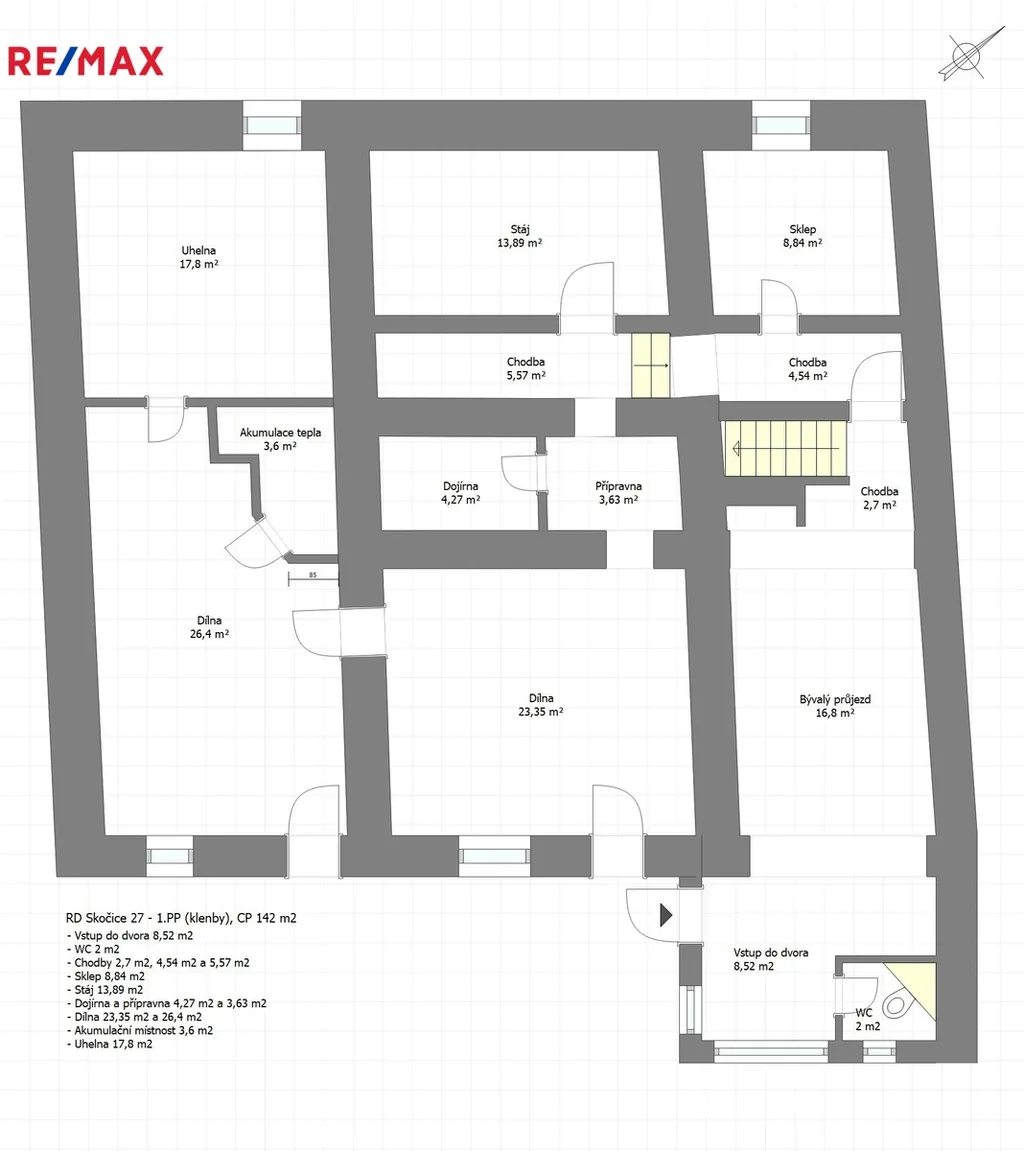 Dům je využitelný pro bydlení i větší rodiny s možností chovu vlastních hospodářských zvířat, rekreaci nebo i jako sídlo menší firmy.