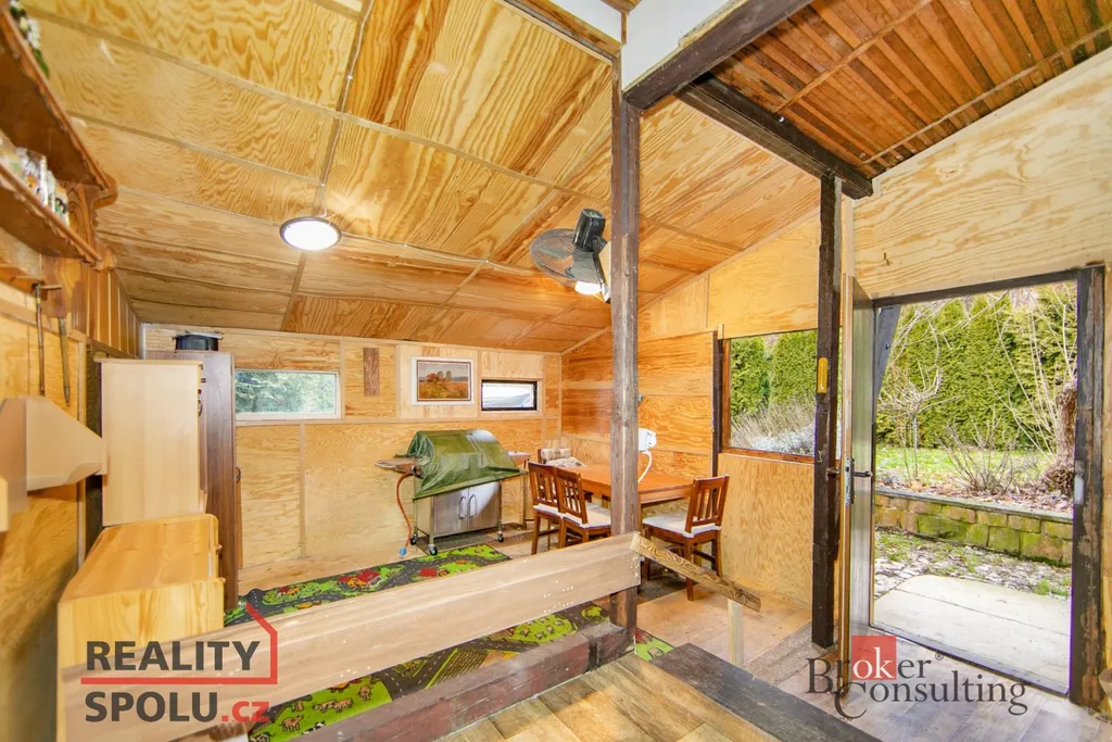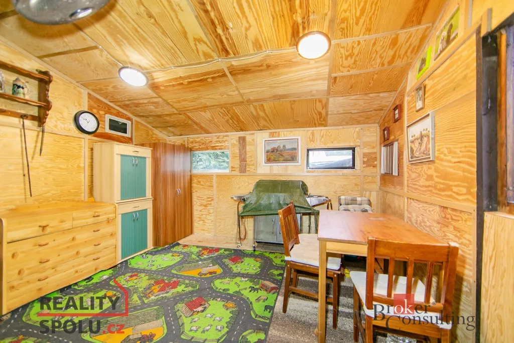 Nabízíme ke koupi dřevěnou chatu s kamenným základem, umístěnou na vlastním pozemku o výměře 322 m². Chata se nachází na okraji lesa, ve velmi oblíbené chatové oblasti Němčičky u Rokycan.