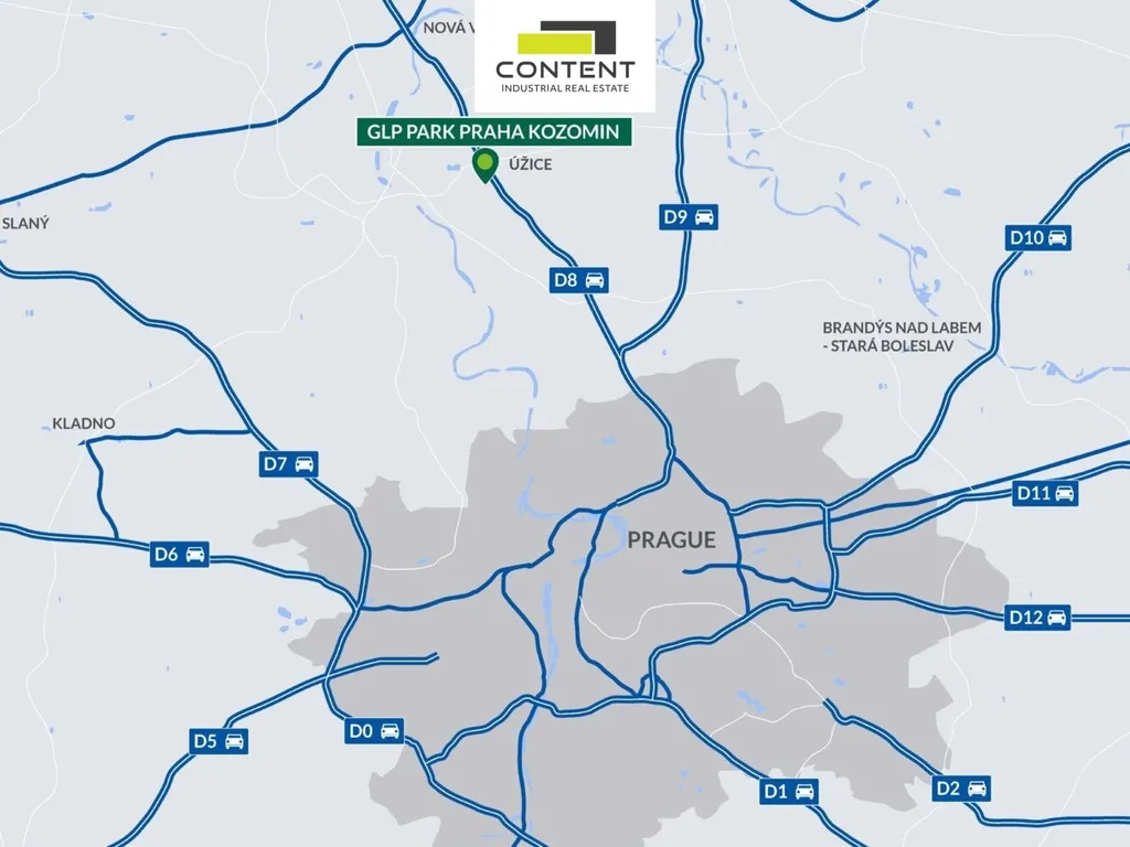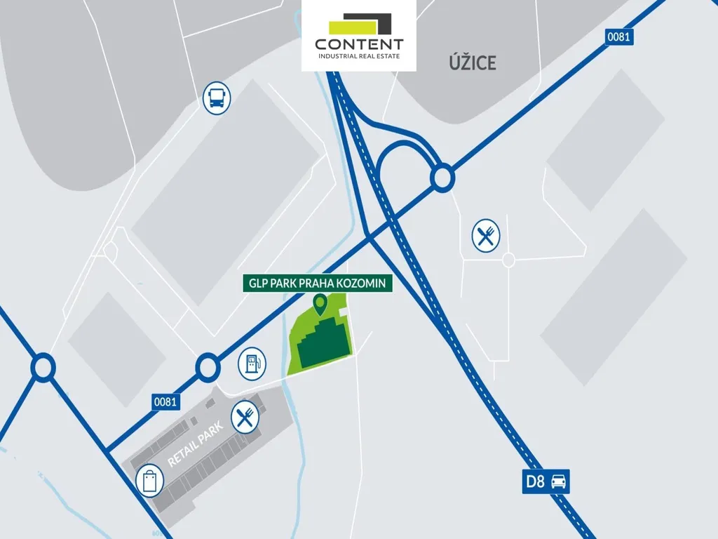 V zastoupení majitele a bez provize nabízíme industriální prostory, vhodné pro sklad, velkoobchod nebo výrobu, přímo u sjezdu z dálnice D8, EXIT 9 Úžice. Novostavba samostatné industriální budovy s celkovou výměrou až 7600 m²: