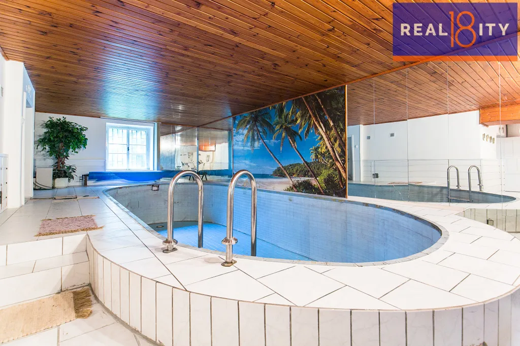 V 1. podzemním podlaží se nachází prádelna se sušárnou, kotelna, bazén, sauna, koupelna se sprchovým koutem a toaletou.
