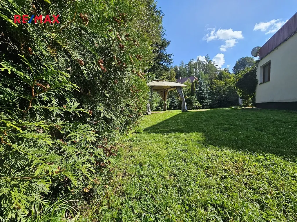 Zahrada je oplocená a díky vzrostlé zeleni poskytuje přirozené soukromí. Pro děti je to skvělé místo na hry, pro dospělé klidná oáza na odpočinek. Na pozemku najdete také užitkové výsadby a ovocné prvky, které dělají ze zahrady nejen hezký, ale i praktický prostor pro každodenní radost.