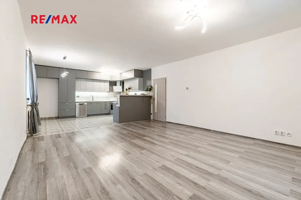 V přízemí navazuje vstupní část (vestavěná skříň a botník), koupelna s oknem s vanou, umyvadlem a toaletou, 2 pokoje a dále obývací prostor propojený s kuchyní, kde je instalována nová kuchyňská linka.