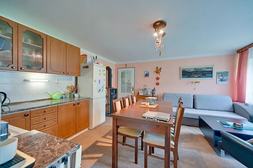 Dům je napojen na elektřinu, vodovod a kanalizaci. Vytápění zajišťuje tepelné čerpadlo a kotel na tuhá paliva. Parkování je možné na vlastním pozemku.