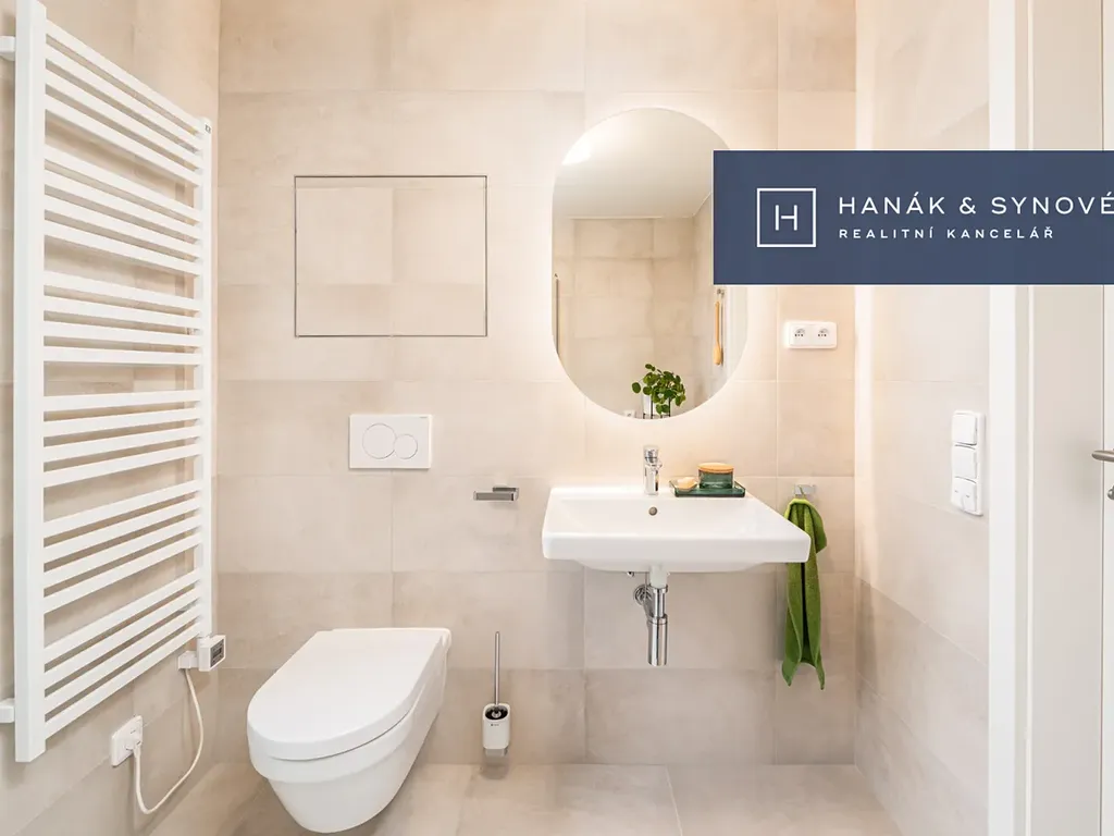 • koupelna je zařízena prvotřídním vybavením Villeroy & Boch a Hansgrohe a velkoformátovými obklady a dlažbou značky DWELL
