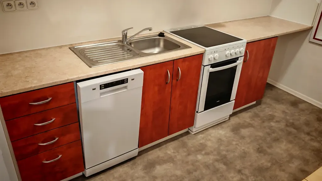 Byt je situovaný do vnitrobloku, okno z pokoje je na pavlač. Byt je v dobrém stavu, vybavení bytu tvoří pouze kuchyňská linka se sporákem se sklokeramickou varnou deskou, myčka nádobí a patro na spaní. Topení a ohřev teplé vody je řešený kombinovaným plynovým kotlem.