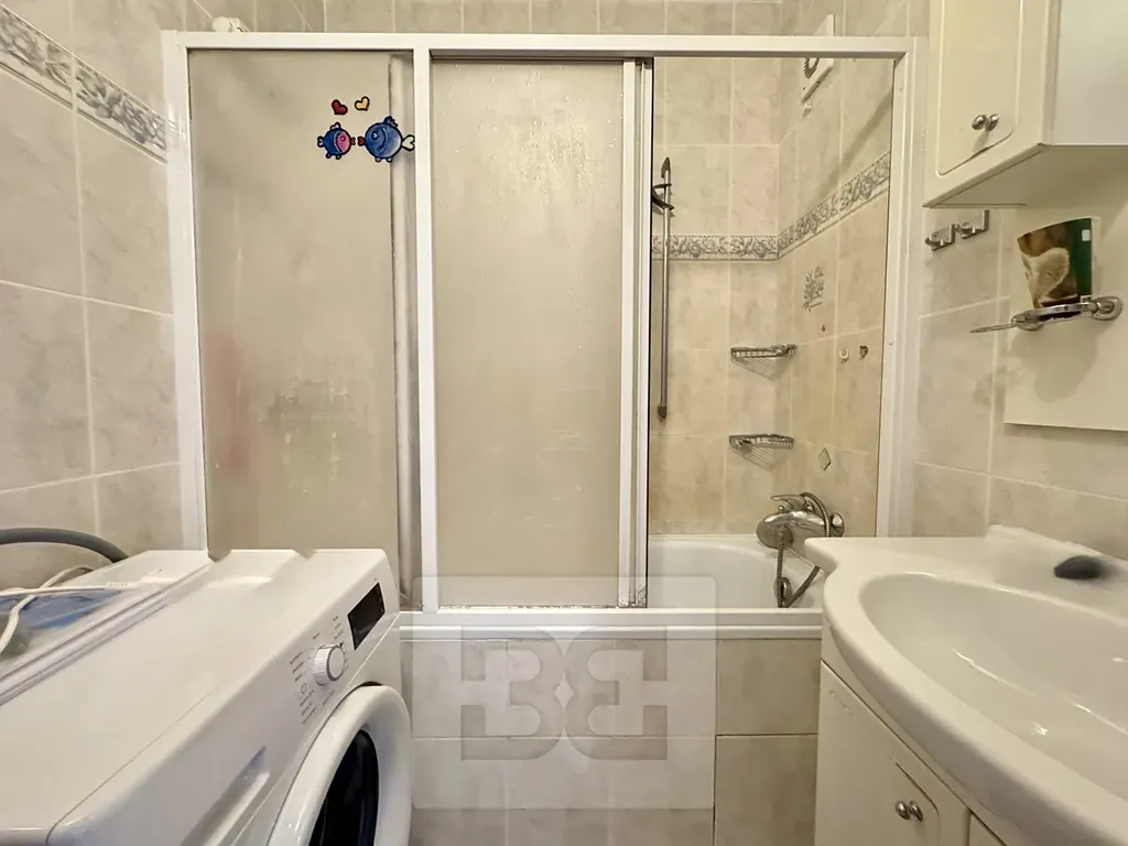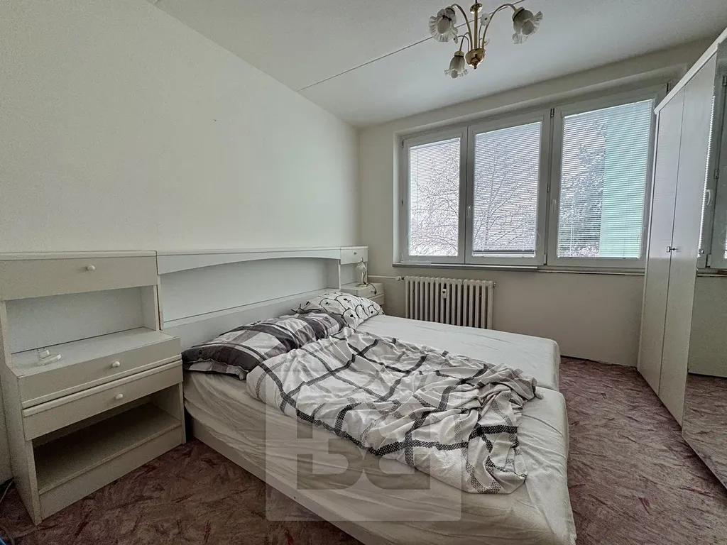 Dále byt disponuje samostatnou toaletou, koupelnou s vanou a pračkou, kuchyní s kuchyňskou linkou, jídelním stolem a zcela novou lednicí.