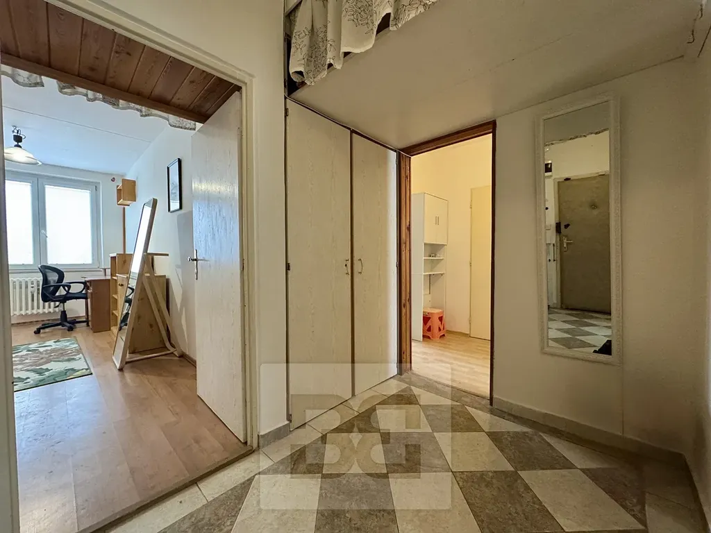 Byt nabízí prostornou předsíň s úložným prostorem, ze které je vstup do všech místností.