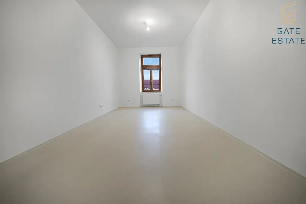 Světlý a nadstandardně prostorný byt, vybaven kuchyňskou linkou včetně trouby, sporáku a digestoře. Ostatní vybavení si nájemník zajišťuje dle vlastních potřeb. Byt se skládá z předsíně, šatny, koupelny, WC, prostorného obývacího pokoje s kuchyňskou linkou a dalších dvou neprůchozích pokojů (jeden z nich má další šatnu).K bytu nenáleží sklep, k dispozici jsou stojany na kola ve vstupní chodbě a je také možnost využití sušárnu na půdě.