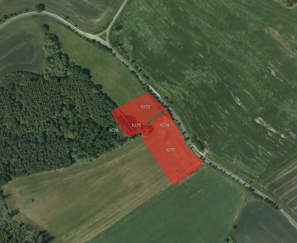 Celková výměra všech pozemků činí 18 767 m² a celá plocha je předmětem prodeje.