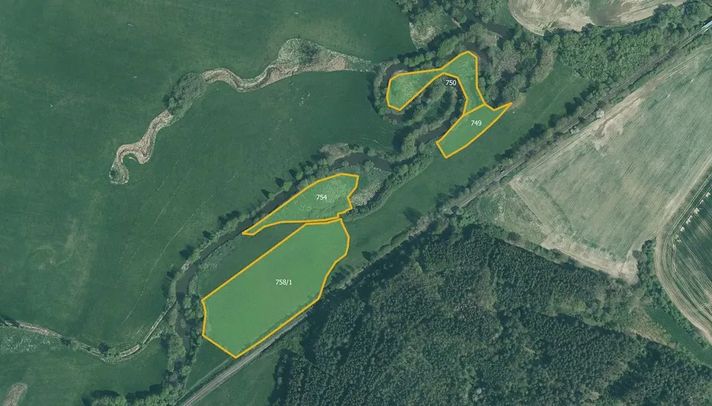 Nabízím k prodeji soubor pozemků ve výlučném vlastnictví o celkové výměře 26 107 m², situovaných v katastrálním území Červené Poříčí, okres Klatovy. Pozemky jsou zapsány na listu vlastnictví č. 543 a tvoří je parcely č. 749, 750, 754, 758/1 a 837/5.
