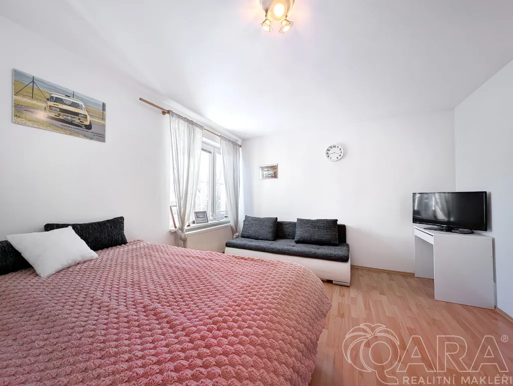 Dům disponuje třemi samostatnými pokoji, přičemž každý má vlastní vstup – jeden z kuchyně, druhý z předsíně a třetí ze zasklené verandy. Toto řešení nabízí dostatek soukromí pro rodiče i děti, případně možnost pracovny nebo pokoje pro hosty.
