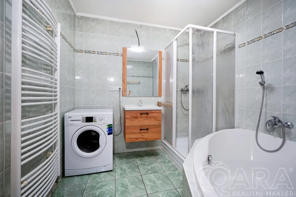Koupelna je prakticky řešena a nabízí jak vanu, tak sprchový kout, k dispozici je přípojka na pračku. WC je samostatné, což výrazně zvyšuje komfort každodenního užívání domu.