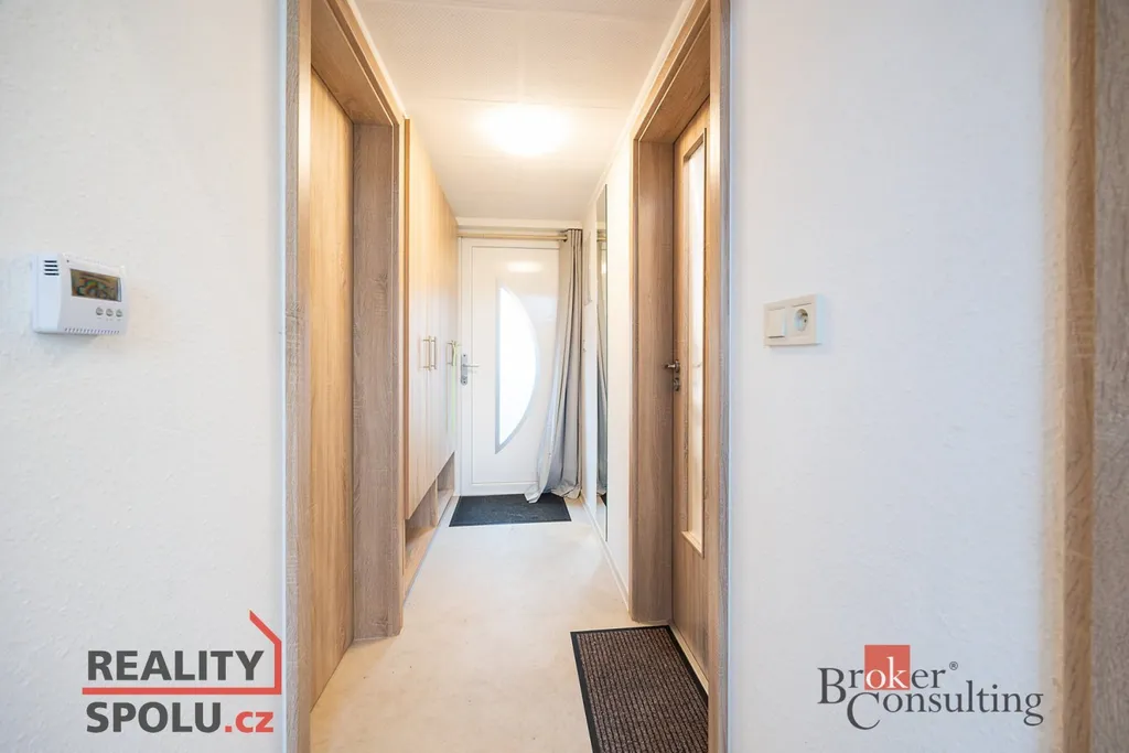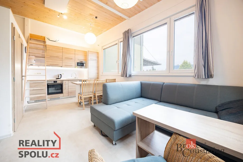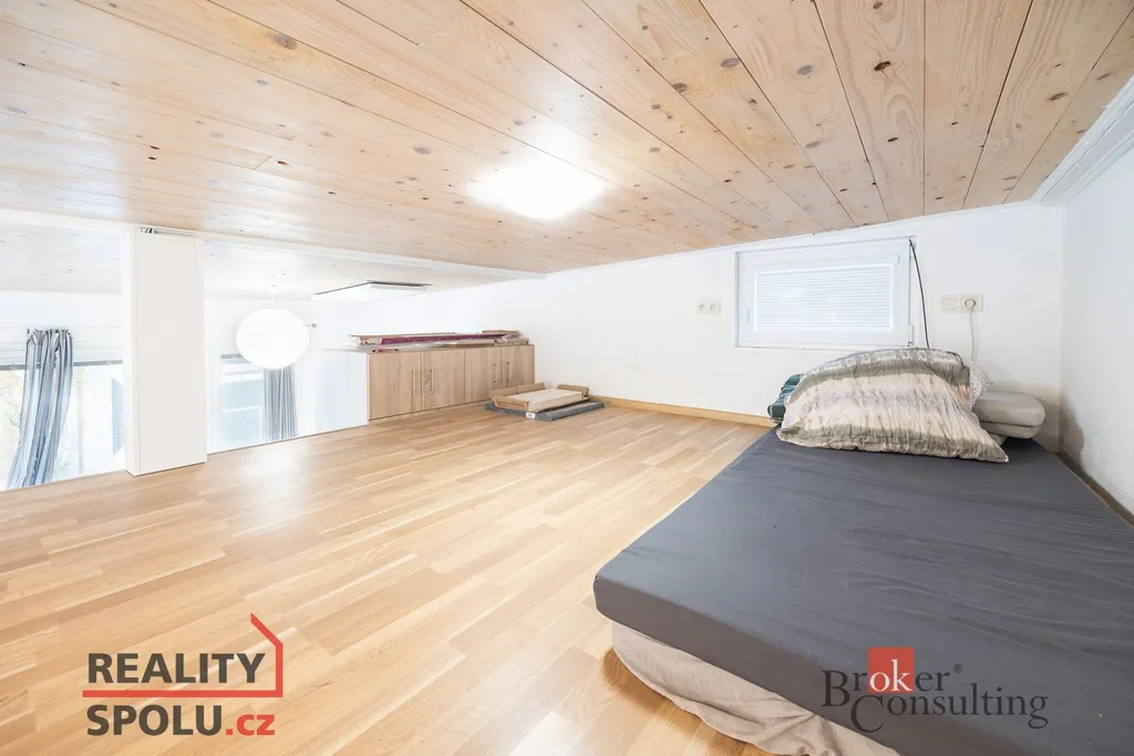 Příjemným prvkem je možnost mezonetového spaní. Vytápění a ohřev vody zajišťují elektrokotel, infrapanely a radiátory.