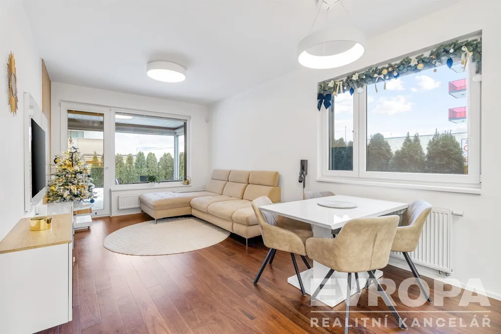 K bytu dále náleží sklepní kóje a vlastní parkovací stání. O komfort bydlení se starají elektrické venkovní žaluzie a sítě proti hmyzu na všech oknech. Lokalita nabízí vynikající dopravní dostupnost – v docházkové vzdálenosti se nachází tramvaj i stanice metra – a zároveň kompletní občanskou vybavenost včetně nové moderní mateřské školy, obchodu, kavárny a pizzerie. Součástí areálu je oplocený vnitroblok s dětským hřištěm.