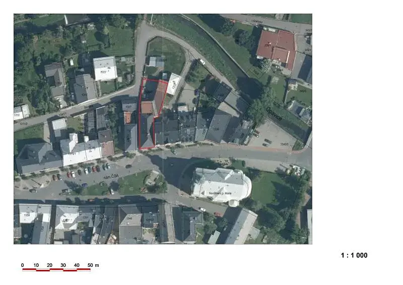 Související pozemky: p.č. 1329 - zastavěná plocha (celý zastavěný) a p.č. 1330/2 - ostatní plocha , tj. 694 m2 pozemků v jednom celku společně s budovou č.p. 26/12