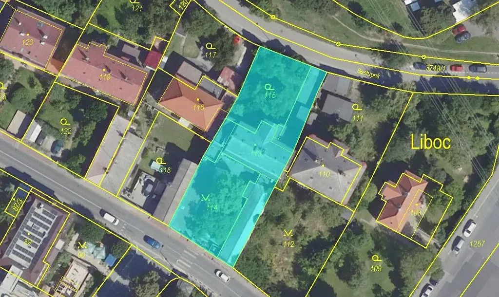 Vlastní pozemek 1.248 m2, zast. plocha 338 m2, pozemek je mírně svažitý se SV orientací, obdélníkového tvaru. Stavba s pozemky je přístupná jak z ulice Libocká, tak z ulice Sestupná. Parkování vozidla je možné na vlastním pozemku s příjezdem z ulice Sestupná.