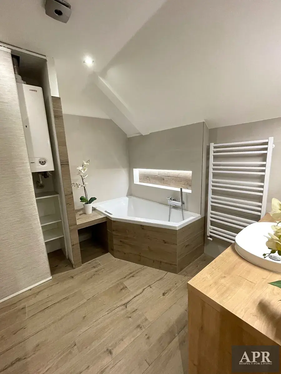 Vstupní chodba jen vybavena šatní místností, botníkem a domácím telefonem. Kuchyňská linka ve tvaru L s ostrůvkem vestavnými spotřebiči: indukční varná deska (4 plotýnky), digestoř, elektrická a mikrovlnná trouba, myčka, velká lednice s mrazákem. Spací část s manželskou postelí a šatní skříní se vstupem na balkon s výhledem na řeku. Dětský pokoj s postelí, na míru vyrobenými psacími stoly a televizním koutkem. Obývací pokoj je vybaven sedací soupravou, konferenčním stolem a televizním koutem. Koupelna s vanou, designovým umyvadlem, ohřívacím žebříkem. WC je samostatné.Úložný prostor všude kam se podíváte. Ve skříních i šatní místnosti. Lokalita veškerá občanská vybavenost je velmi silným benefitem dané nemovitosti. V okruhu pár minut pěší chůze máte k dispozici: Centrum města s veškerými úřady, mateřskou, základní i střední školu, nemocnici, lékárnu, obchod s potravinami, bankovní pobočky, jazykovou školu, restaurace, kavárny, vlakové i autobusové nádraží a mnohá další.