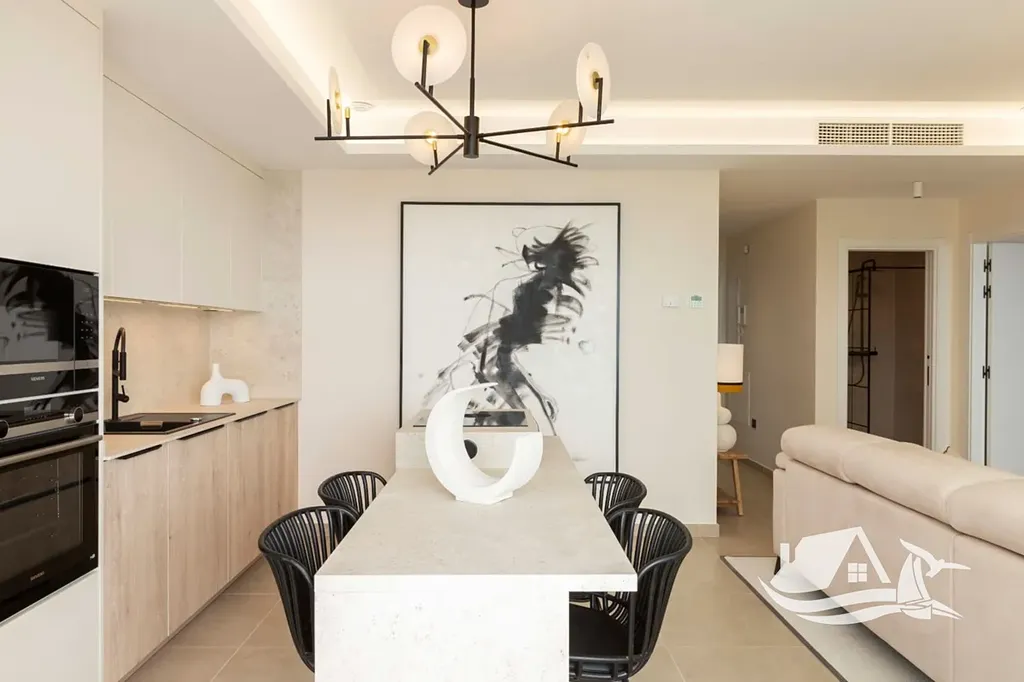 Interiéry jsou kompletně zařízené s vysoce kvalitními spotřebiči, podlahou z porcelánové dlažby a praktickými vestavěnými skříněmi, které nabízejí dostatek úložného prostoru bez narušení estetického dojmu. Moderní technologie chytré domácnosti umožňují snadné a efektivní ovládání domova, podlahové vytápění dodává příjemné teplo v chladnějších dnech a videotelefon zvyšuje pocit bezpečí. Celý koncept je navržen tak, aby byt byl připravený k okamžitému nastěhování a poskytoval dlouhodobou hodnotu jak pro vlastní bydlení, tak pro investici.