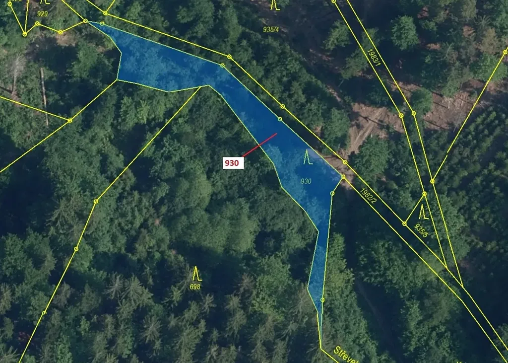 Lesní pozemek o výměře 967 m2, parcelní číslo 930, podíl 1/1, katastrální území Jílové u Držkova, obec Jílové u Držkova, obec s rozšířenou působností Železný Brod, okres Jablonec nad Nisou, Liberecký kraj.