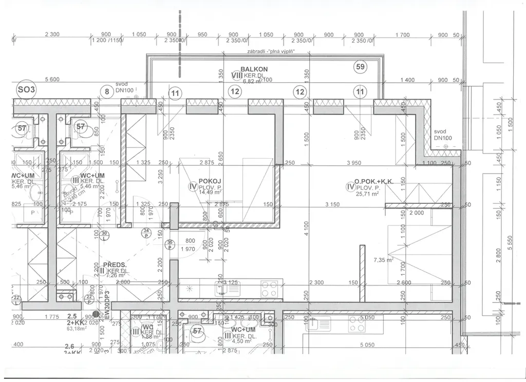 Tento byt zde uvádíme jako modelový, v prodeji jsou ještě další byty 2+kk umístěné v různých podlažích domu. K dispozici jsou pro Vás také byty 3+kk.