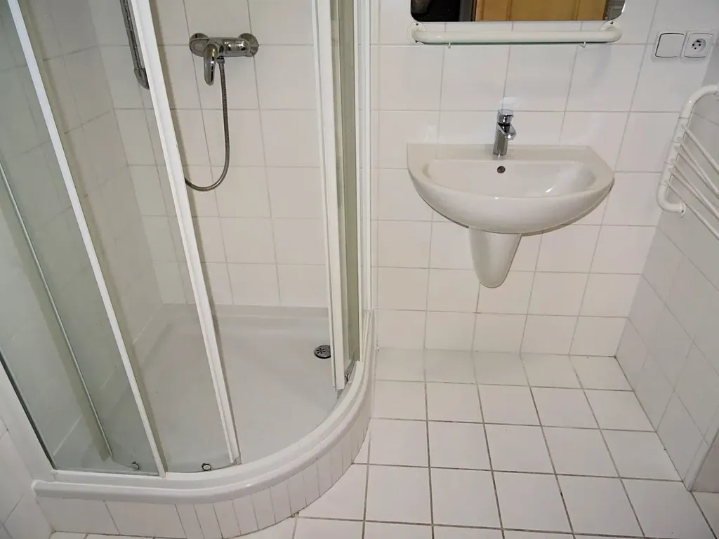 Byt je po kompletní renovaci, nezařízený nábytkem. V odděleném kuchyňském koutě linka, sklokeramická deska, trouba, myčka. Podlahy - dřevěné, dlažba. V koupelně sprchový kout, toaleta, umyvadlo, topný žebřík. V předsíni menší šatní skříň.