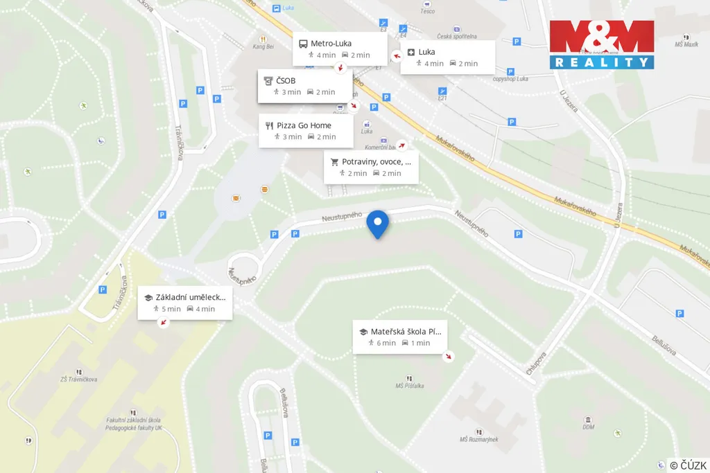 Prodej velmi dobře dispozičně řešeného, slunného bytu 3+1, 82 m2, možno upravit jako 4+kk, s velkou zasklenou lodžií, nacházejícího se v 1. patře, udržovaného panelového domu, (nový výtah, nová plastová okna včetně vchodových dveří, nová dlažba na společných chodbách domu) vzdáleného pouze několik metrů od stanice metra Luka a novým nákupním centrem. Nabízíme Vám bydlení obklopené překrásnou přírodou a přitom s velmi dobrou dostupností do samotného centra Prahy cca 15 minut s kompletní OV v místě(lékař, MŠ, ZŠ, zábavné a sportovní kroužky, plavání, minigolf, restaurace i kavárny, banky i pošta, cyklostezka). Bytová jednotka je v družstevním vlastnictví se zcela splacenou anuitou. Koupi bytu je možno financovat hypotečním úvěrem se zástavou jiné nemovitosti, který Vám v případě Vašeho zájmu vyřídíme. Více informací v RK.