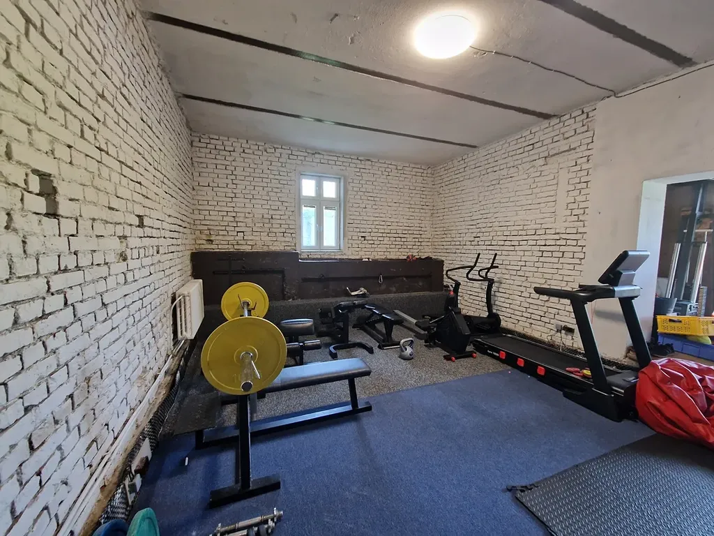 Na pozemku se nachází také zděný jednopodlažní objekt (110 m²), který může sloužit jako sklad, technické zázemí, nebo být přestavěn na další bytové jednotky či služby.