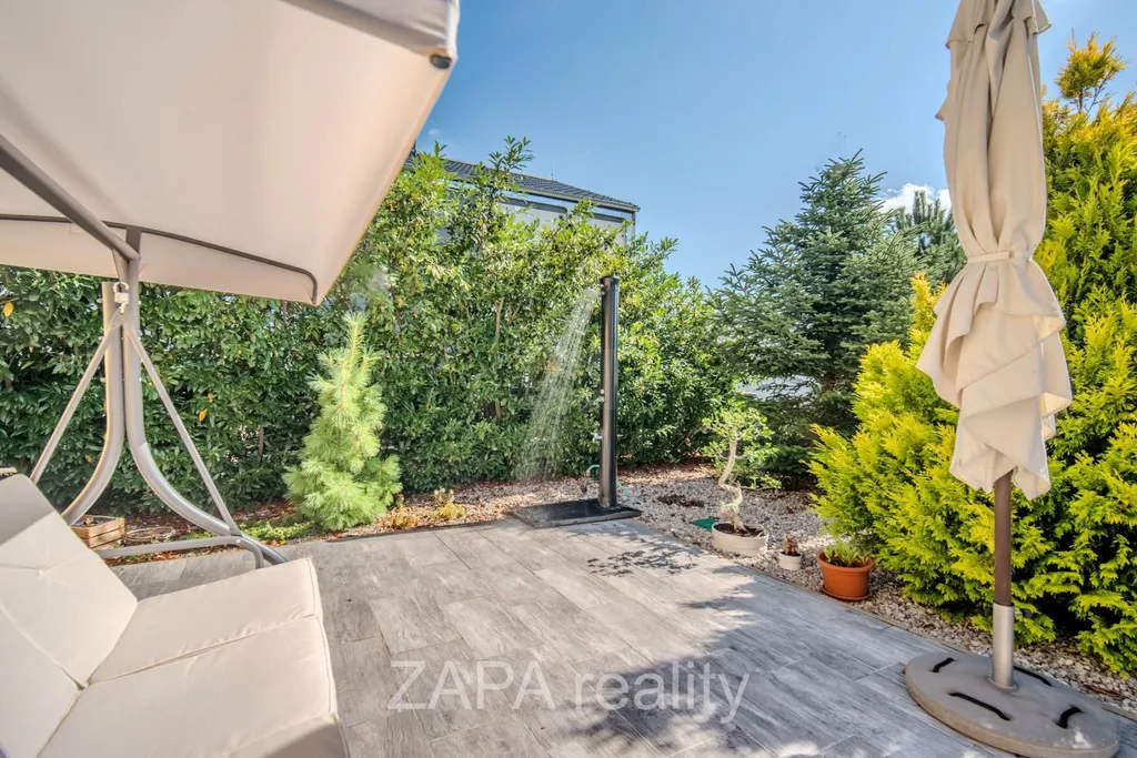 - Zahrada 494 m s vzrostlou zelení, závlahovým systémem a bazénem s protiproudem