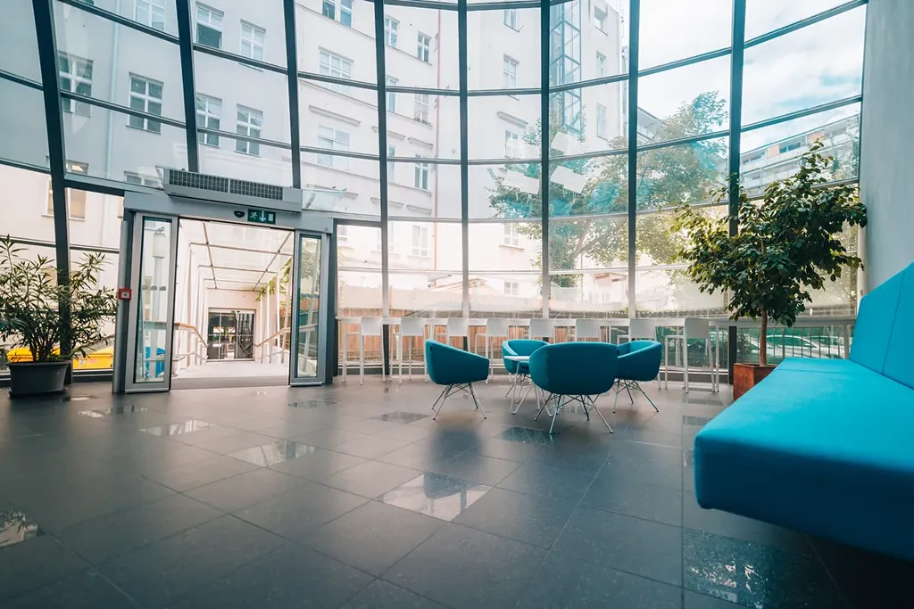 V přízemí budovy je reprezentativní recepce se security službou, lobby pro návštěvníky a obchodní prostory. Výtahem nebo po schodišti jsou dostupné kanceláře ve vyšších patrech. Celá budova prošla renovací, nabízené kanceláře jsou připraveny vyklizené a vymalované. Standardem jsou klimatizace a vstup pro zaměstnance přes čipovou kartu nebo služba zajišťující úklid společných prostor.