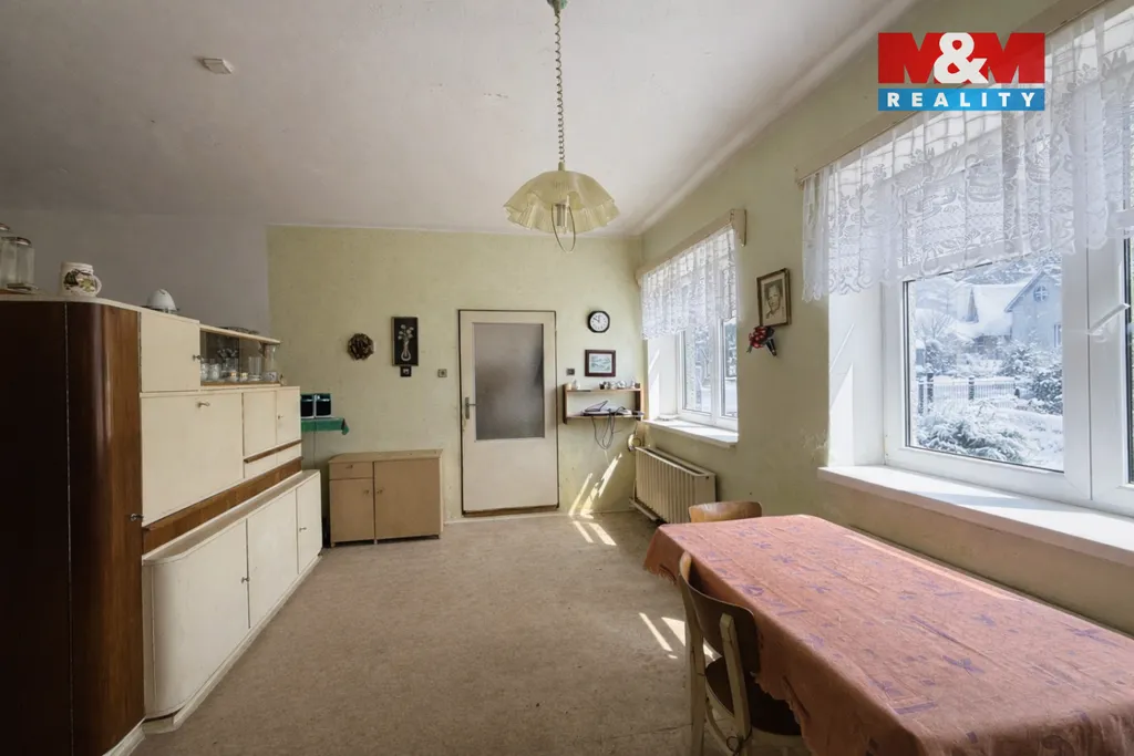 Nabízíme ke koupi dům se dvěma bytovými jednotkami v obci Radčice u Železného Brodu. Jedná se o objekt občanské vybavenosti v původním, ale zachovalém stavu. V 1.NP bytová jednotka 2+1 (81m2) s úložnými prostory. Ve 2.NP bytová jednotka 4+1 (95m2). Obě jednotky disponují koupelnou a toaletou. Půda pochozí s možností realizace další bytové jednotky. Dům je částečně podsklepený. V domě se nachází dílna, garáž a komory. Za domem stodola. Vytápění zajišťoval kotel na tuhá paliva. Odpady žumpa, vodovod obecní. Dům nabízí široké možnosti využití - k trvalému bydlení, rekreaci i jako investice. Klidná lokalita, krásná okolní příroda a dobrá dostupnost do Železného Brodu i Jablonce nad Nisou.
