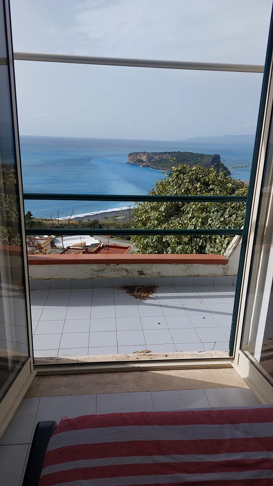 Horní terasy mají stín od kvetoucích keřů a hroznů. Na podlaze je dlažba. Terasy nabízejí nádherný výhled na moře a ostrov Dino. Na terasy je přiváděna voda pro čištění teras.