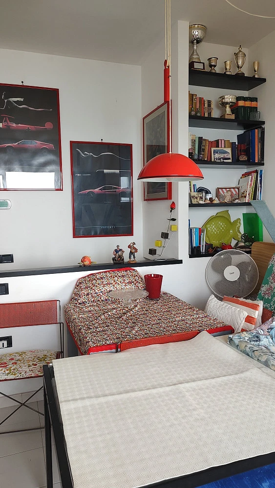 V horním patře je obývací pokoj s kuchyňským koutem, koupelna a schodiště do dalších podlaží. Na další úrovni je ložnice s manželskou postelí a další koupelnou a vstupem na velkou terasu.