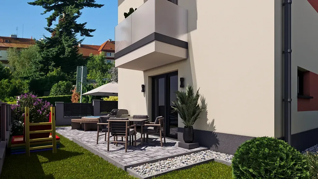 KRÁSNÝ BYT SE ZAHRADOU 108 m2 A PARKOVACÍM STÁNÍM !!! Hledáte klidné bydlení v atraktivní lokalitě plné zeleně, a přitom v dosahu centra? Exkluzivně nabízíme k prodeji moderní byt 3+kk o velikosti 60 m² v přízemí novostavby domu se třemi bytovými jednotkami v žádané části Prahy 5 – Košíře + pozemek 108 m2 + parkovací stání. Dispozice a vybavení - světlý obývací pokoj s kuchyňským koutem a přímým vstupem na terasu - 2 samostatné ložnice s dostatkem úložného prostoru - moderní koupelna a samostatné WC - terasa s posezením na zahradě (108 m2) náležících k bytové jednotce - parkovací stání novostavba ve vilové čtvrti – okolí tvoří klidné rodinné domy se zahradami, žádné velké panelové komplexy komorní projekt pouze s několika jednotkami, soukromí a bezpečí terasa a vlastní zahrada nízké provozní náklady díky moderním technologiím a zateplení designové provedení – čistá architektura, prostorná okna, důraz na detail výborná dopravní dostupnost – tramvaj i autobus v pěší vzdálenosti, do centra do 15 minut blízkost přírody – park Cibulka a lesopark Košíře-Motol ideální na sport a procházky Lokalita: Košíře patří mezi nejžádanější rezidenční čtvrti Prahy – nabízí kombinaci vilové atmosféry, zeleně a současně snadné dostupnosti centra. V okolí se nachází školy, školky, obchody i sportoviště.