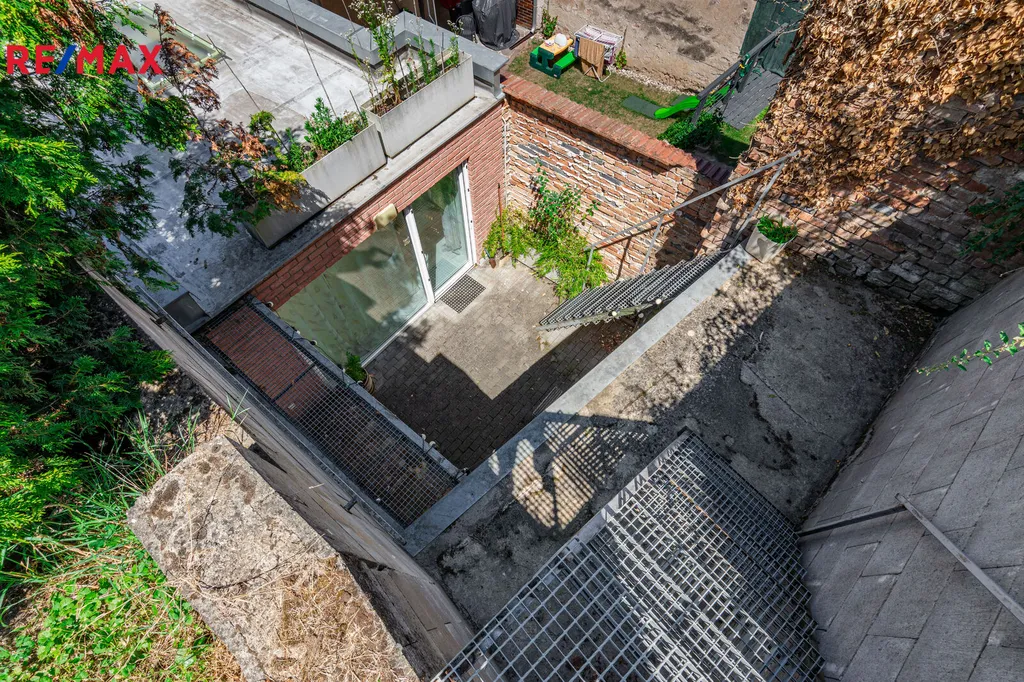 Obytná část je propojena s venkovním dvorkem, který umožňuje pohodlné venkovní posezení.